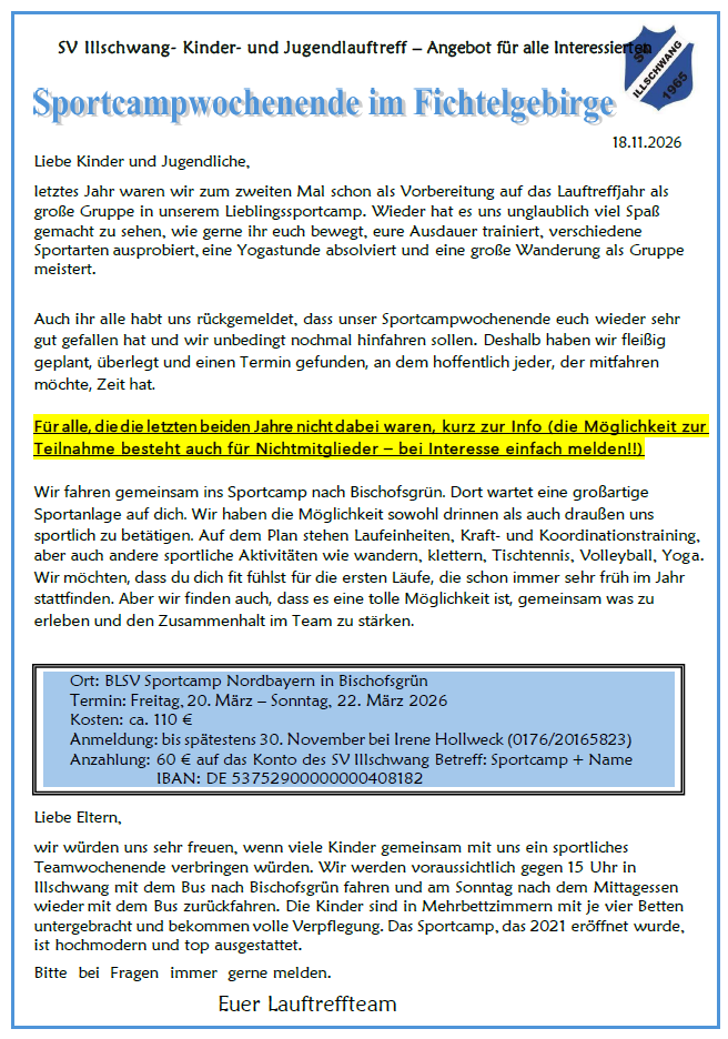 Angebot des SV Illschwang e.V. für Kinder und Jugendliche im Jahr 2026