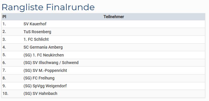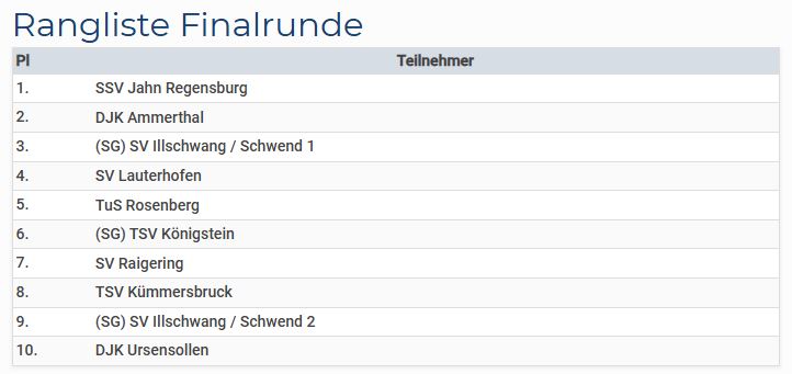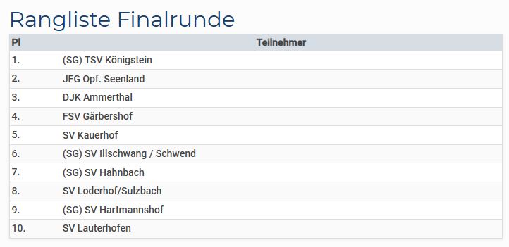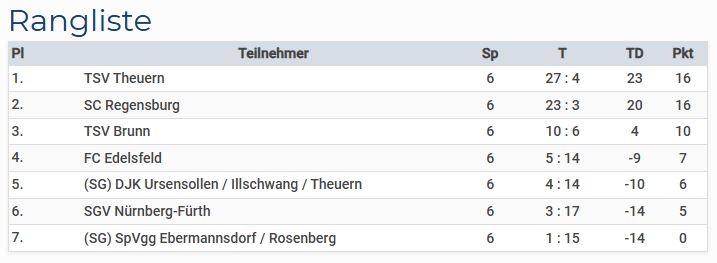 30. Januar 2026 – Rangliste (und Spielergebnisse)
