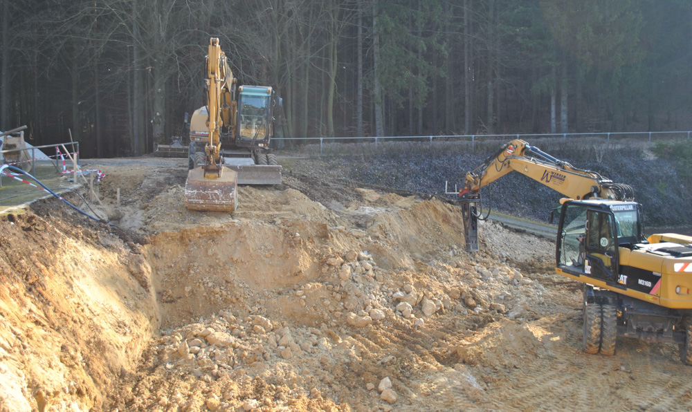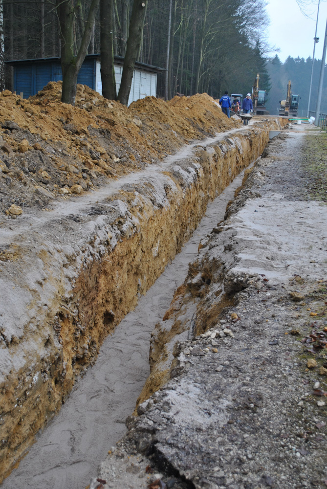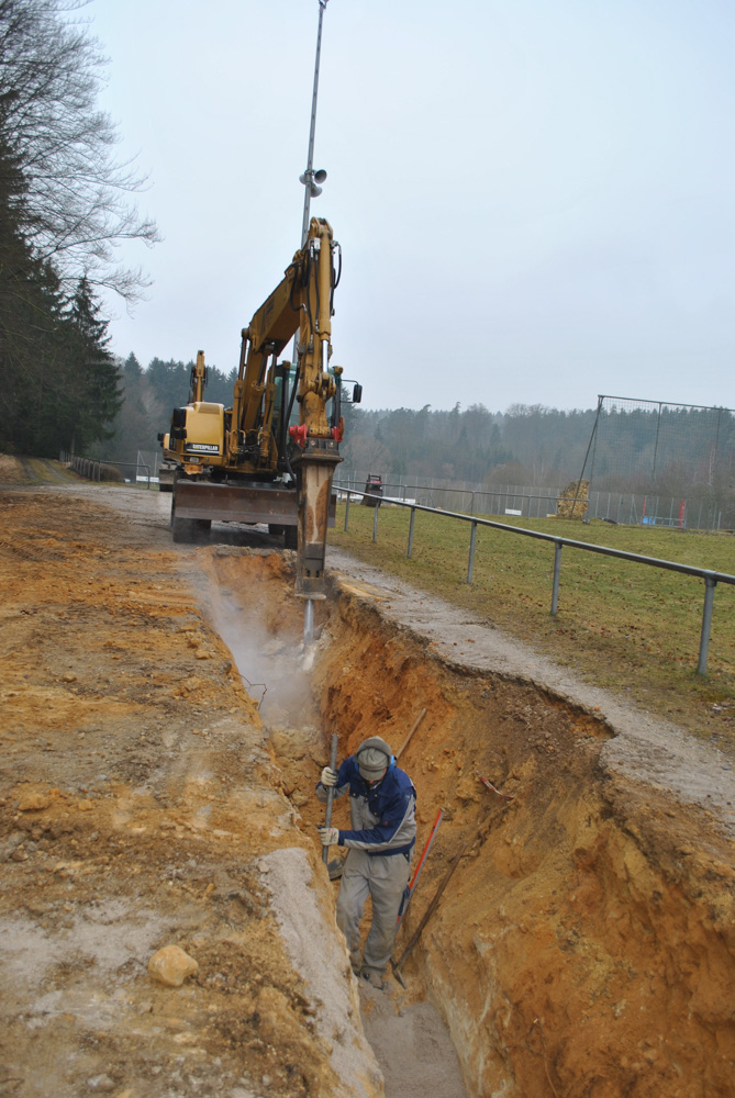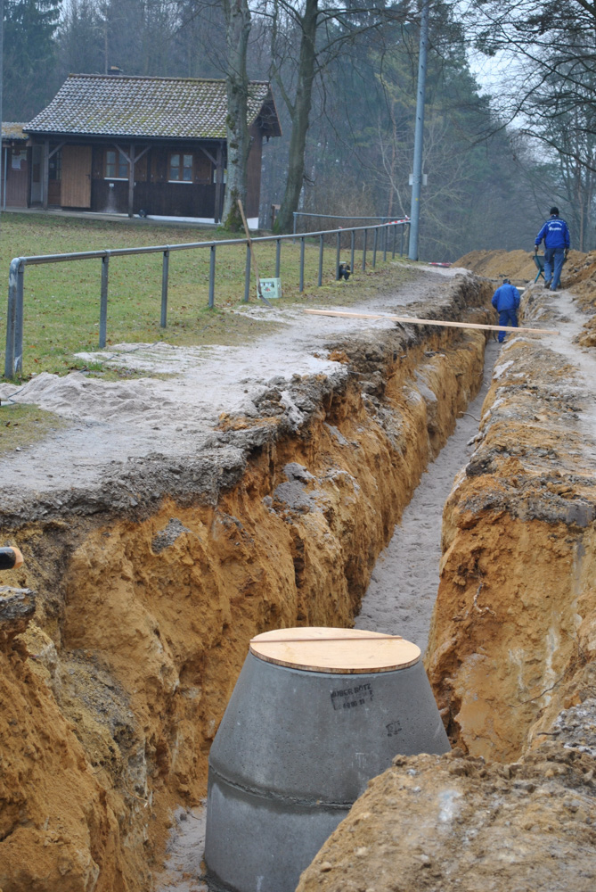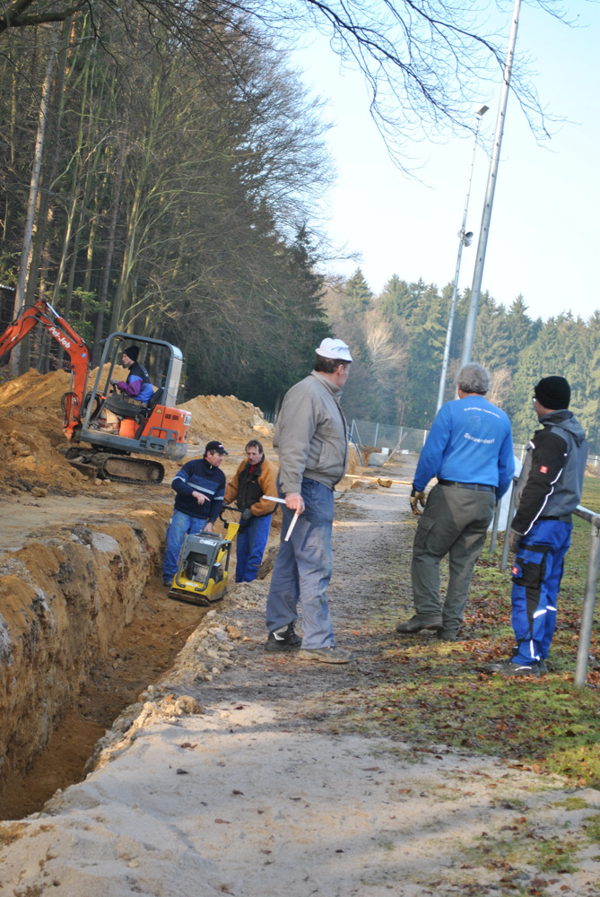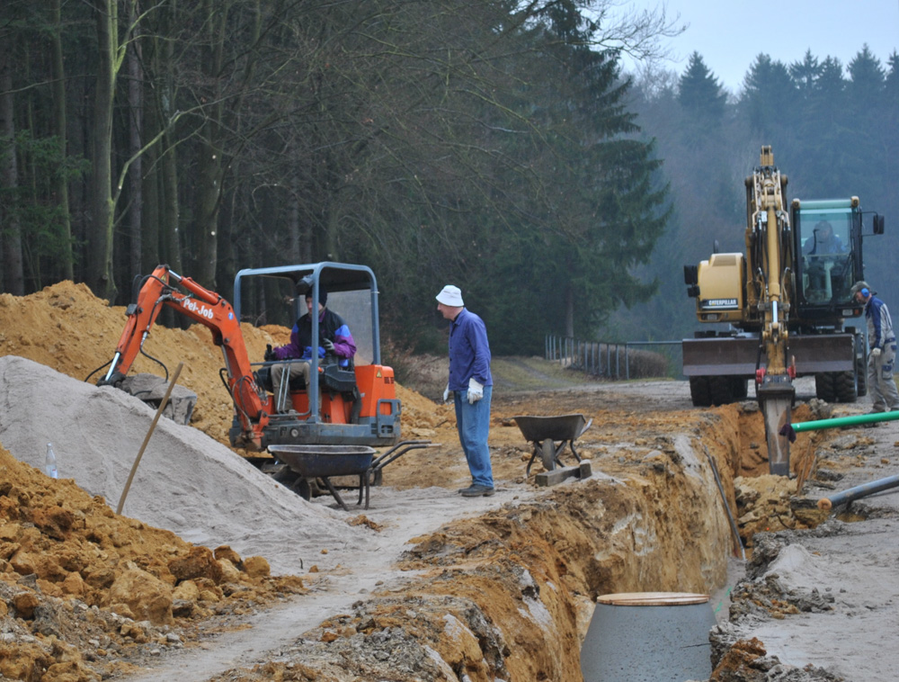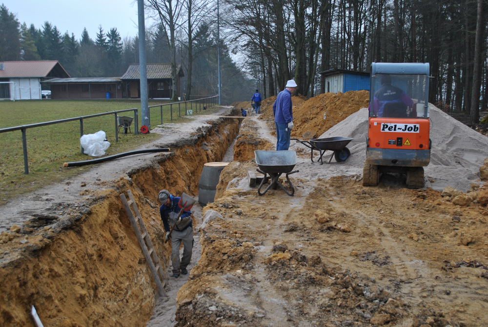 Alles begann mit dem Bau des Kanals und der Versorgungsleitungen Anfang März 2014. Mit tatkräftiger Unterstützung zahlreicher Helfer fanden die Arbeiten unter Leitung von Herbert Dürgner statt.