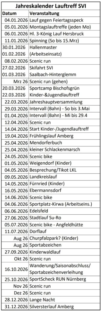 Vorstehend der vorläufige Jahreskalender des SVI Lauftreff für das Jahr 2026.